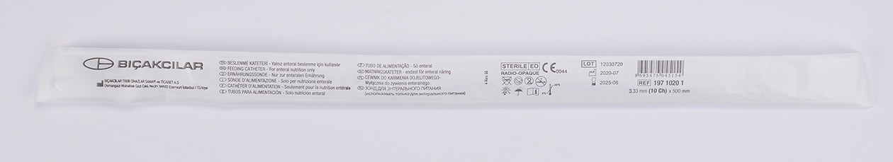Bıçakçılar Beslenme Kateteri (Sonda) 10 Numara – Siyah, enteral beslenme uygulamalarında mide veya intestinal sisteme güvenli ve kontrollü besin iletimi sağlamak amacıyla kullanılan medikal sondadır. 10 numara (CH) çapı, pediatrik ve uygun klinik hasta gruplarında kullanım için idealdir.