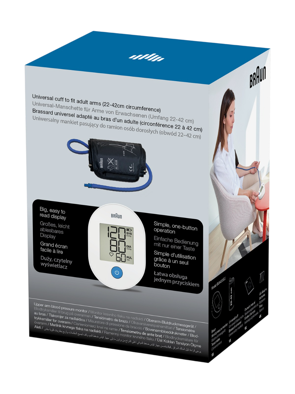 Braun ExactFit™ 1E, Avrupa Hipertansiyon Derneği (ESH) tarafından onaylanmış ve klinik olarak doğruluğu kanıtlanmış, evde kullanım için geliştirilmiş üst koldan dijital tansiyon ölçüm cihazıdır. Geniş ve kolay okunabilen ekranı ile tek tuşla kullanım sunarak tansiyon takibini pratik ve güvenilir hale getirir.