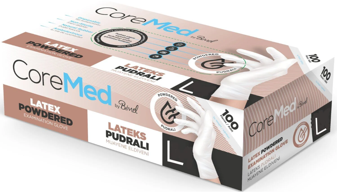 Coremed Lateks Muayene Eldiveni Pudralı Large, geniş el yapısına sahip kullanıcılar için tasarlanmış, tek kullanımlık doğal lateks muayene eldivenidir. Pudralı iç yüzeyi, eldivenin hızlı ve kolay giyilip çıkarılmasını sağlayarak yoğun kullanımlarda pratiklik sunar.