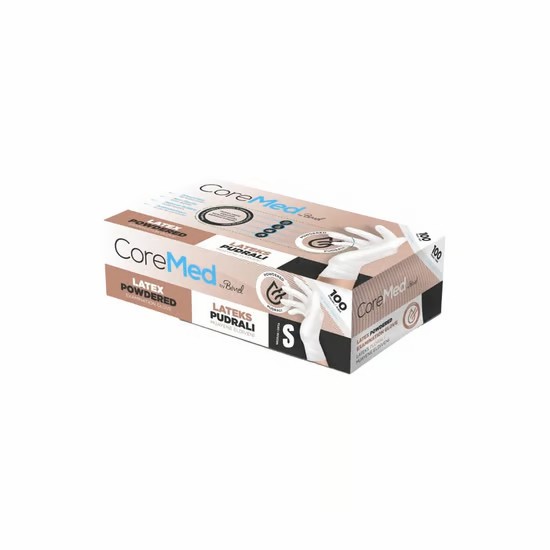 Coremed Lateks Muayene Eldiveni Pudralı Small, medikal muayene ve hijyen gerektiren uygulamalar için tasarlanmış tek kullanımlık, doğal lateks eldivendir. Pudralı yapısı, eldivenin kolay giyilip çıkarılmasını sağlayarak yoğun kullanım gerektiren ortamlarda zaman kazandırır.