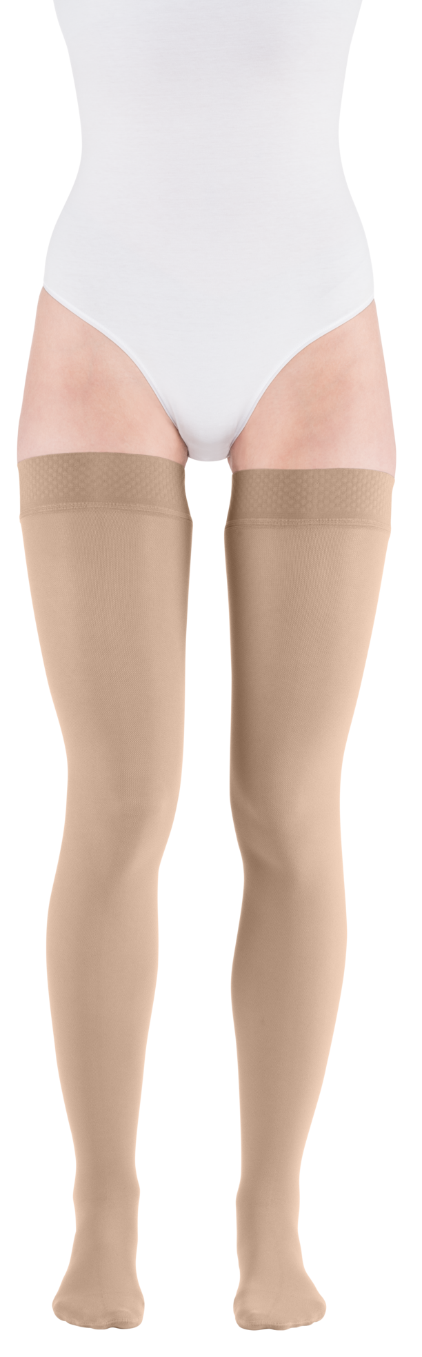 Mediven Plus CCL3 dizüstü varis çorabı, yüksek kompresyon ihtiyacı olan kullanıcılar için geliştirilmiştir. Dizüstü formu sayesinde bacak boyunca geniş alanda destek sağlar ve etkili kademeli basınç uygulayarak venöz dolaşımı destekler. Burnu kapalı yapısı klasik çorap konforu sunarken, Plus serisinin dayanıklı ve opak dokusu yoğun kullanım için uygundur.