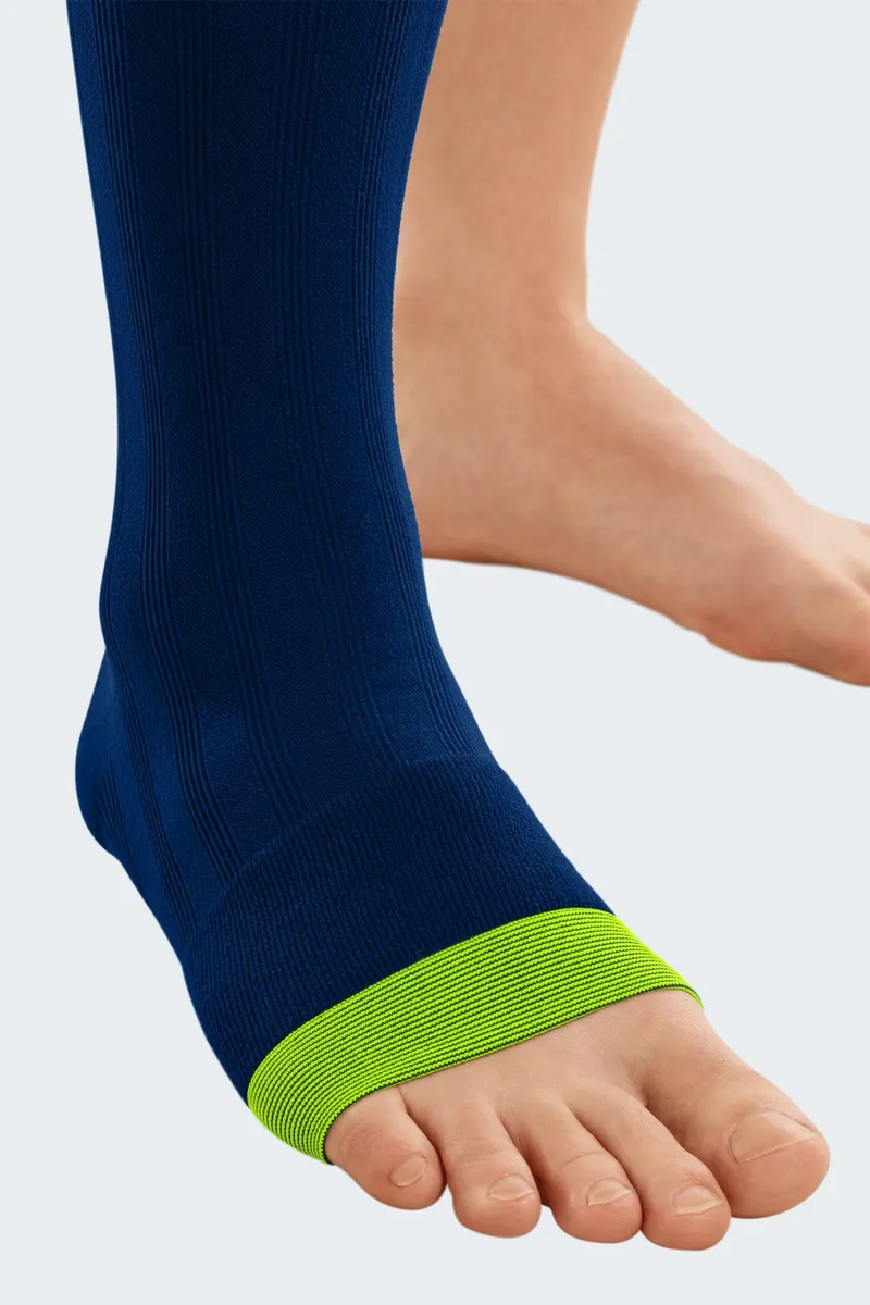 Dizüstü uzunluk, burnu açık yapı, kademeli basınç sistemi, mikro peluş örgü teknolojisi, nefes alabilen ince kumaş yapısı ve uyluk kısmında kaymayı önleyen silikon bant (MBS) ile güvenli ve konforlu kullanım sağlar.