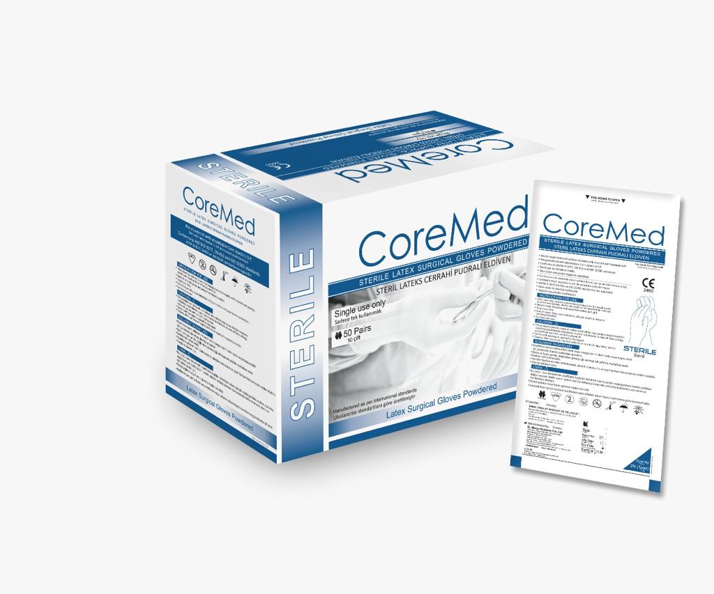 Coremed - Steril Cerrahi Eldiven - 6,5 Numara - Pudralı - Lateks